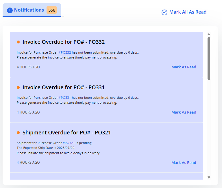 | {{LanguageResource.TradingPartner}} | {{LanguageResource.PO}} | {{LanguageResource.PODate}} | Delivery By | Shipment Date | Invoice Status | {{LanguageResource.SLASTATUS}} | {{LanguageResource.Days}} | Days Overdue |